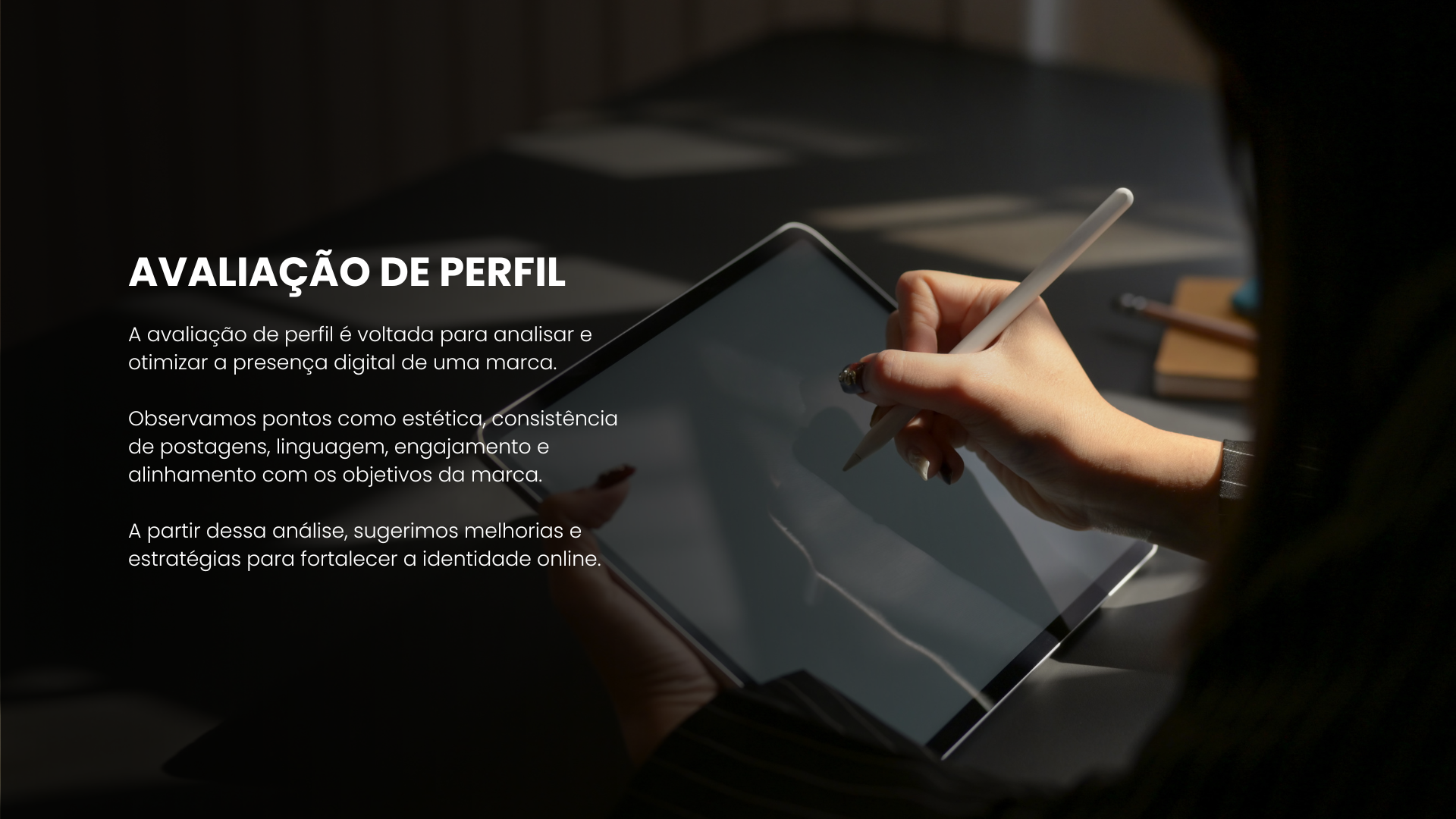 Oferecemos serviços completos que unem projetos visuais de impacto ao posicionamento estratégico de marca. Combinamos design criativo e comunicação assertiva para criar identidades únicas, sempre alinhadas aos valores e objetivos de cada cliente.